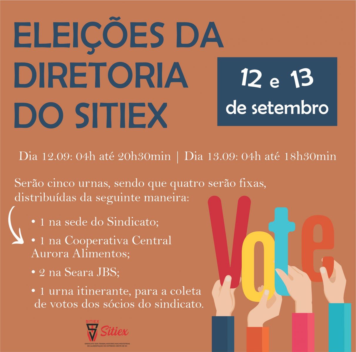 ATENÇÃO: Eleições da diretoria do Sitiex - 12 e 13 de setembro