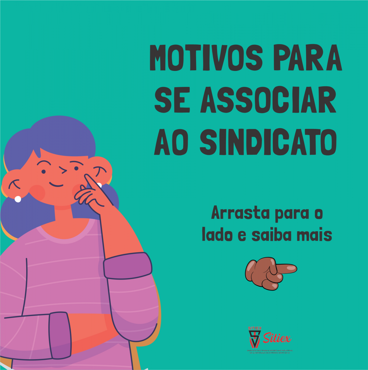 O Sitiex te dá vários motivos para você se associar ao sindicato! Garantia de direitos, suporte jurídico, força da categoria, são alguns elementos que valem a pena serem considerados.