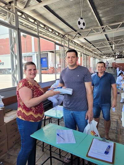 O brinde é composto por um conjunto de toalhas (banho e rosto) e uma caixa de chocolate. Nos próximos dias, as entregas devem continuar até todos e todas receberem o brinde.